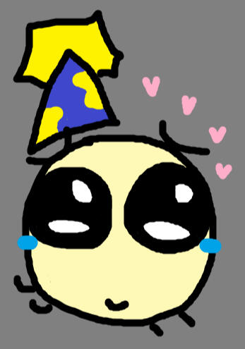 This is my objectsona, Giggler! He's just a ball with a party hat TBH...-Giggler uses all pronouns! I mainly use He/They for him, but it doesn't matter!